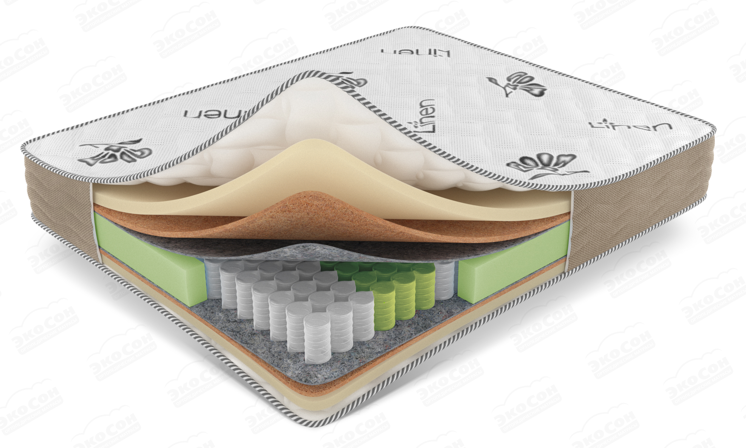 Чехол из натурального льняного трикотажа Linen, стеганный на Hollcon (300) и Ecofoam (10 мм)